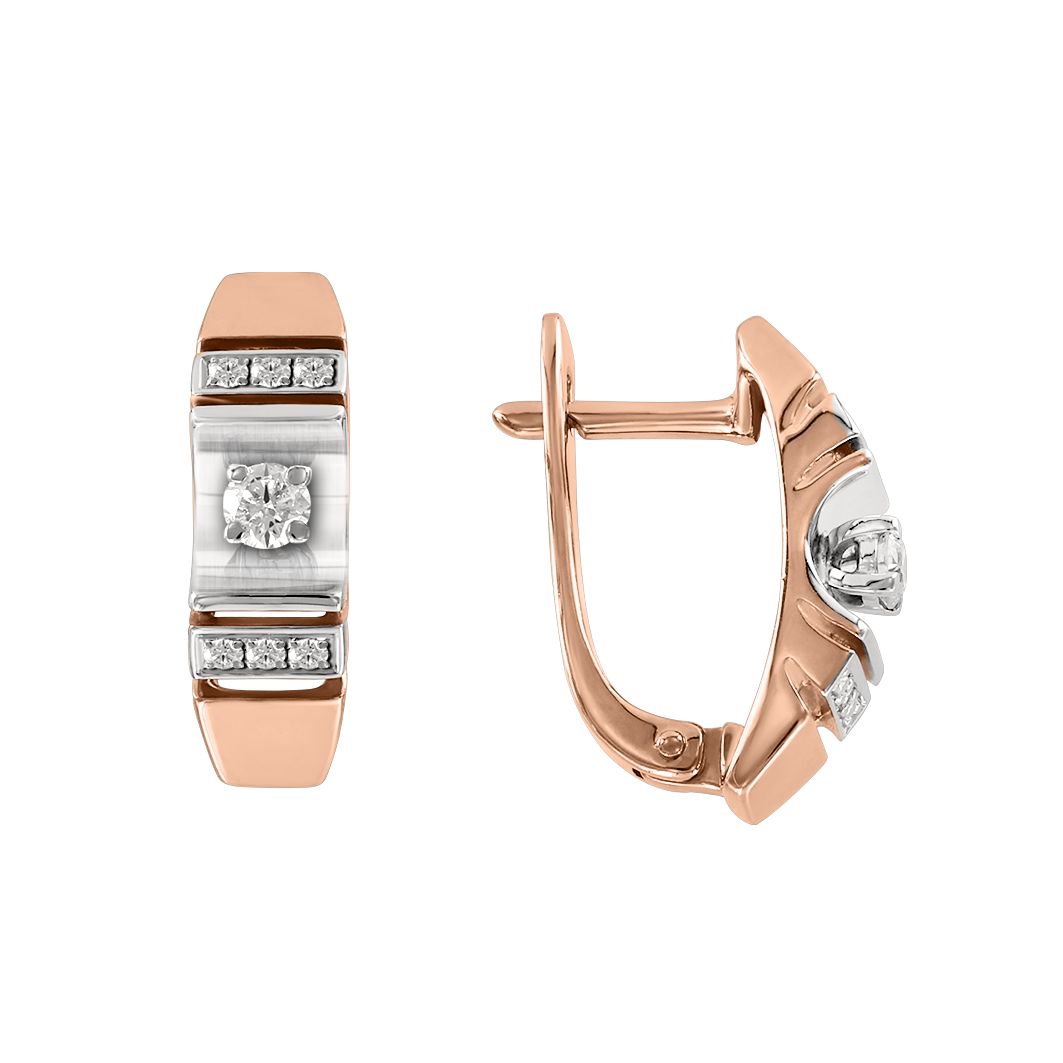 Изысканные серьги из комбинированного золота 585 пробы, с бриллиантами 0,15 ct. WSI, высота ≈ 17 мм