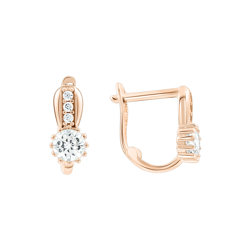 Замечательные детские серьги, российское красное золото 585 пробы, с 8 фианитами, высота около 10 мм