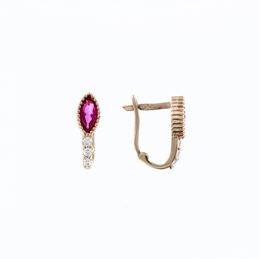 Привлекательные детские серьги из красного золота 585 пробы, с фианитами, высотой ≈ 12 мм, с английским замком.