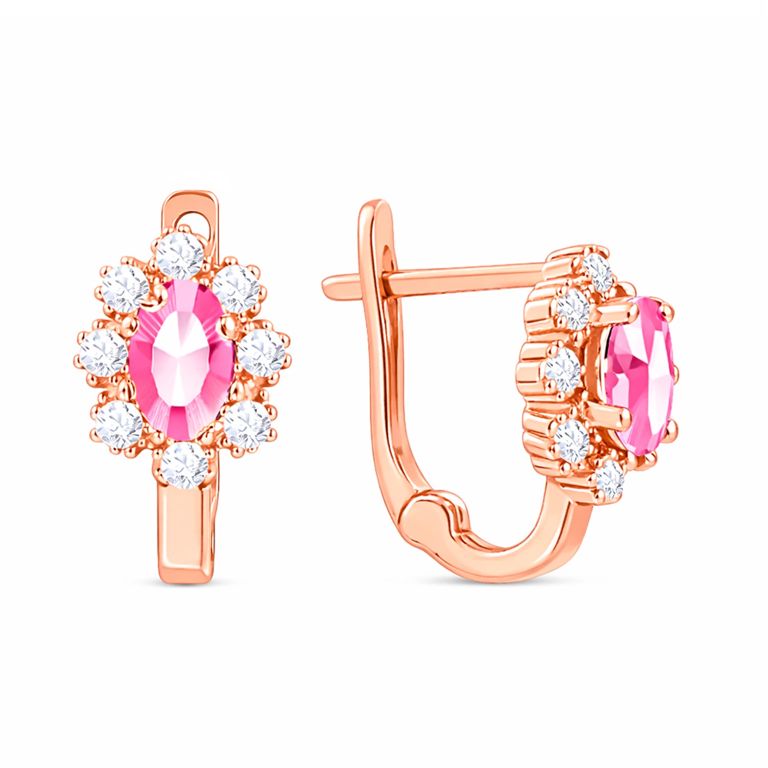Прекрасные детские серьги из красного золота 585 пробы, с фианитами, высотой ≈ 12 мм.