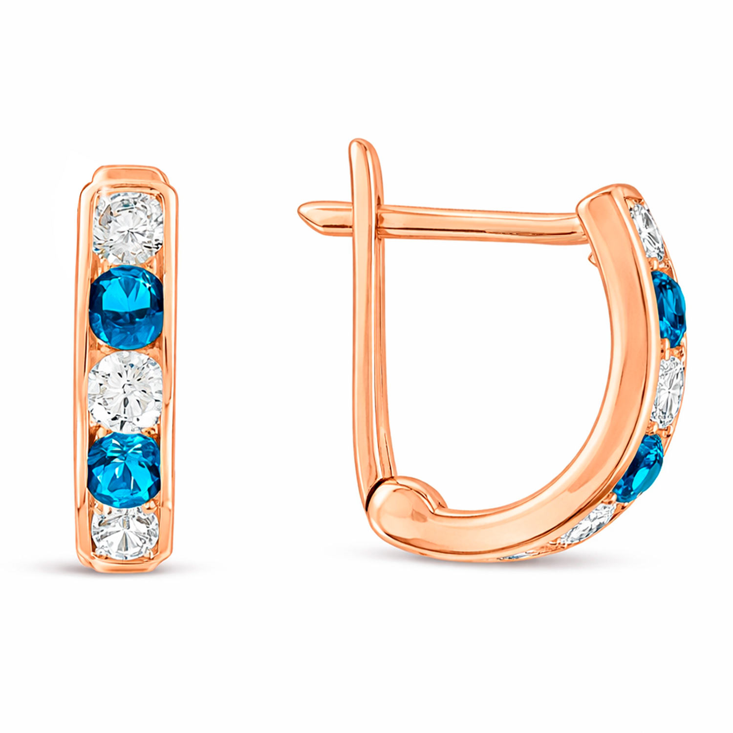 Привлекательные детские серьги из красного золота 585 пробы, с синими и бесцветными фианитами, высотой ≈ 11 мм.