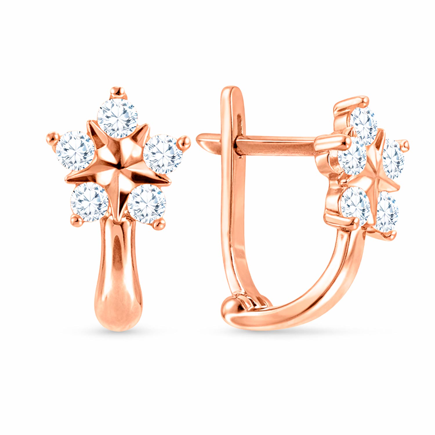 Прелестные детские серьги из красного золота 585 пробы с фианитами, высотой ≈ 11 мм.