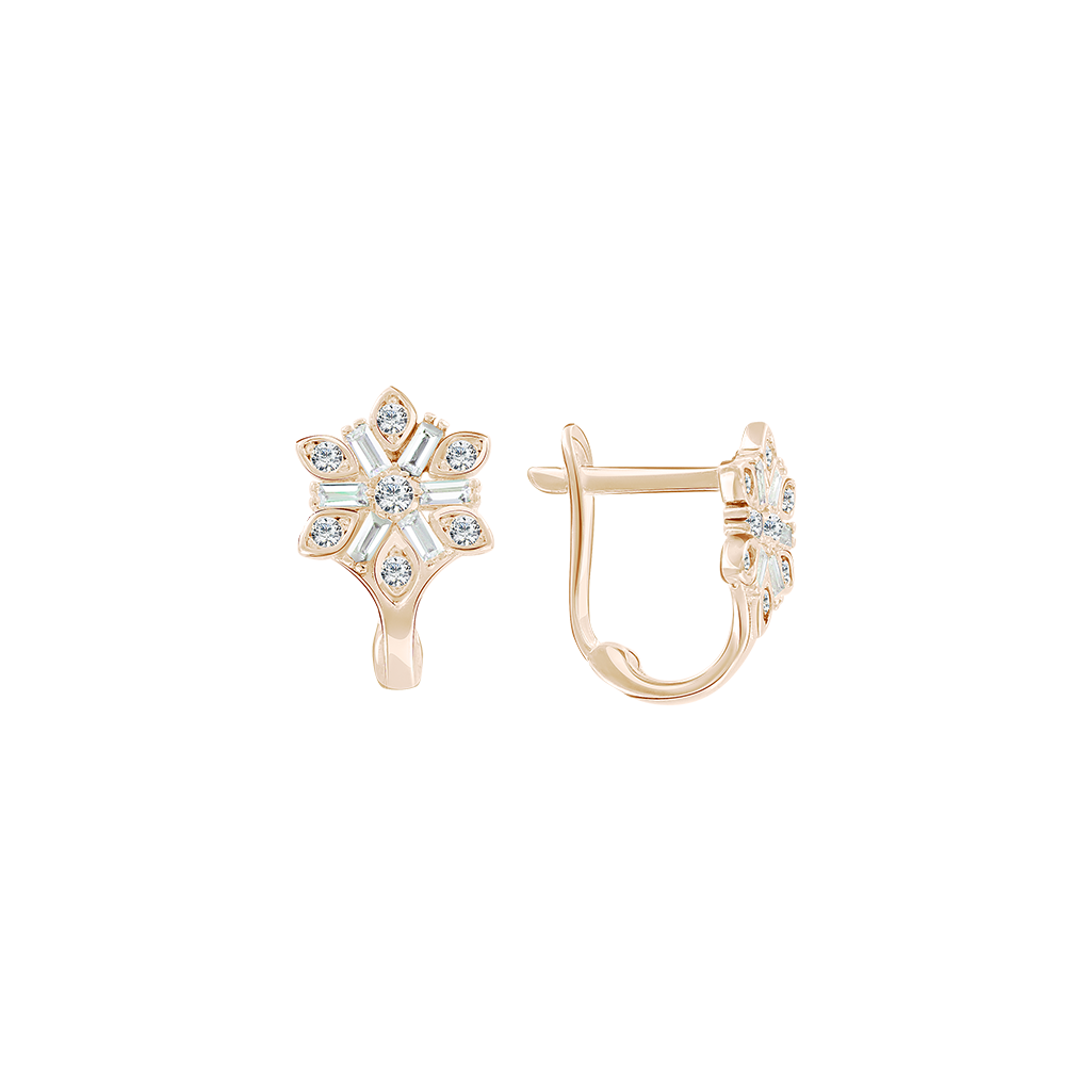 Чудесные детские серьги, российское красное золото 585 пробы, с 14 фианитами, высота ок. 11 мм