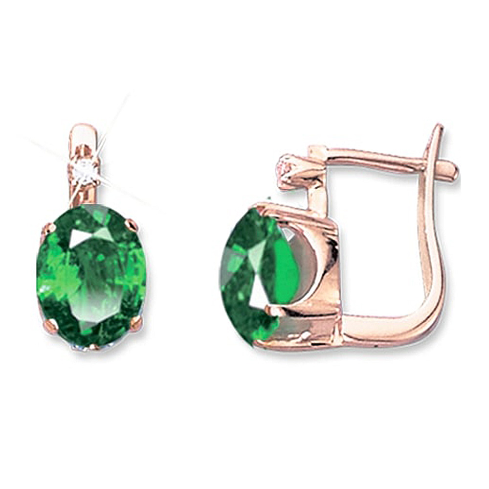 Серьги из красного золота 585 пробы с изумрудом HTS и цирконием