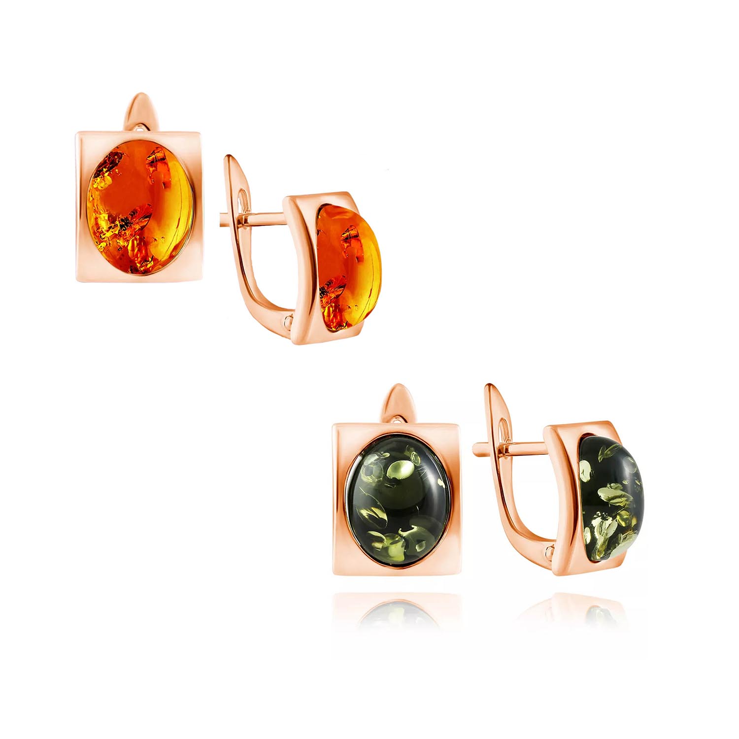 Серьги из позолоченного серебра 925 пробы, квадратные, с овальными камнями из красного или зеленого янтаря