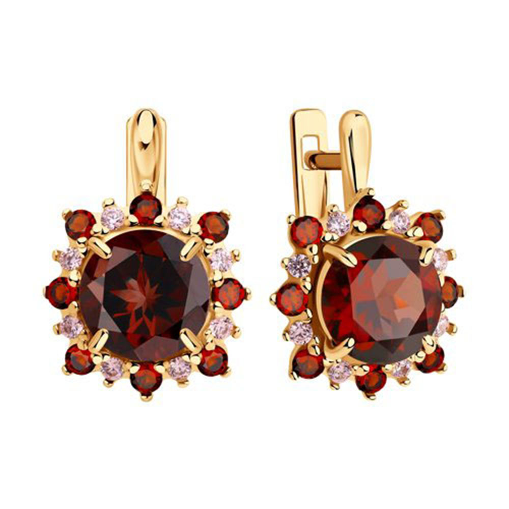 Серьги из позолоченного серебра 925 пробы с гранатом и фианитами.