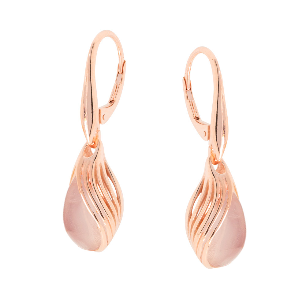 Серьги из серебра 925 пробы с розовым кварцем, розовая позолота