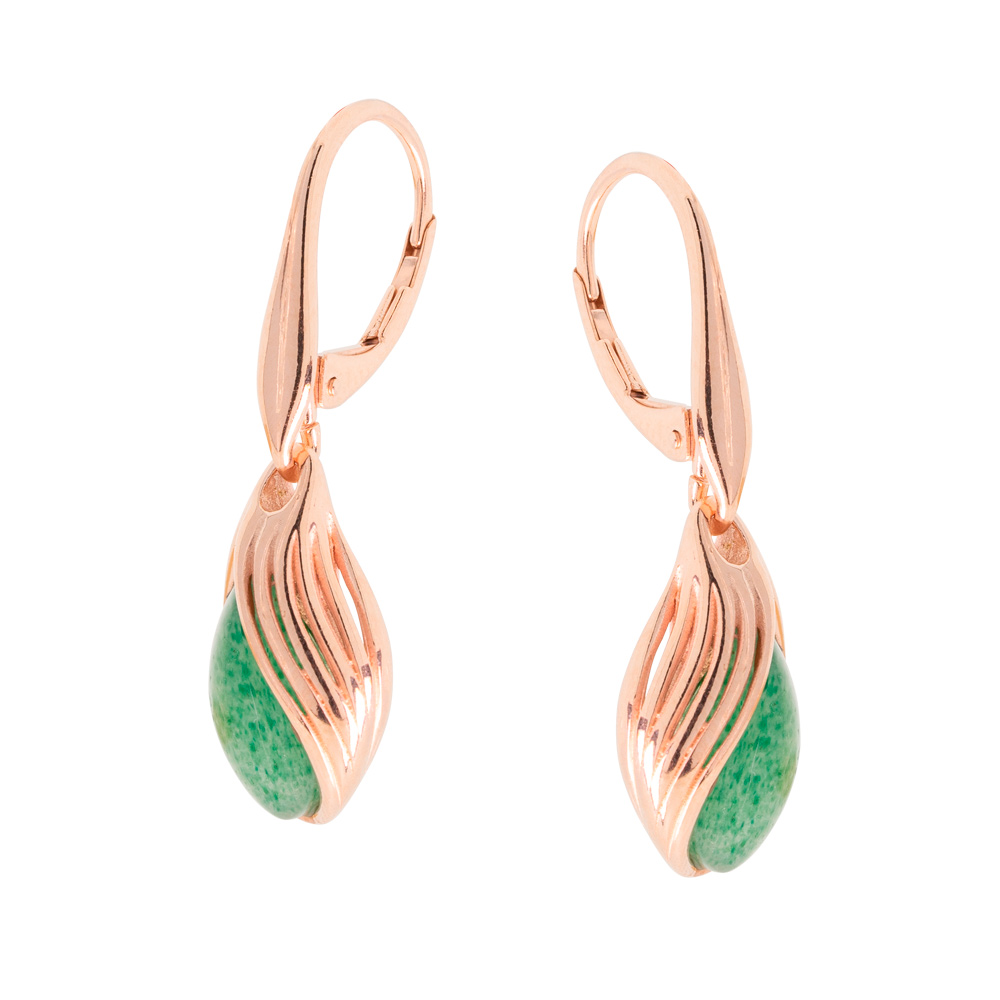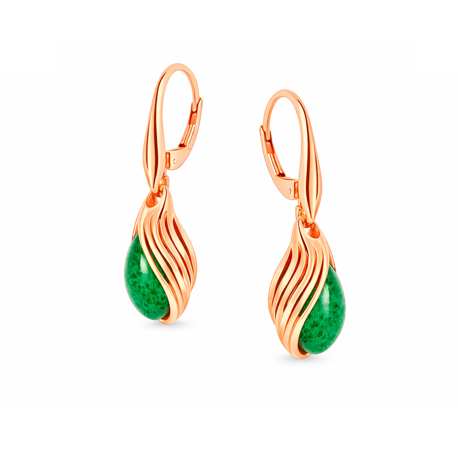 Серьги из серебра 925 пробы с зеленым кварцем, розовая позолота