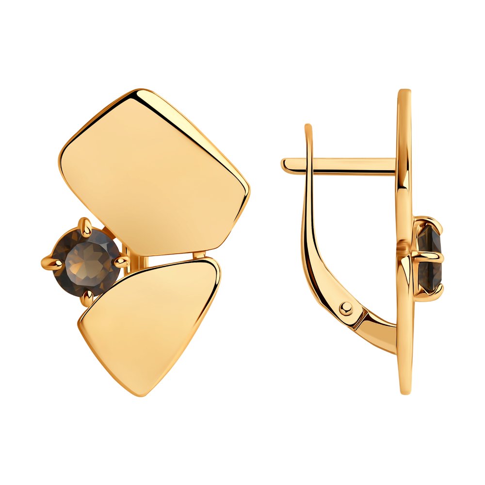 Серьги из позолоченного серебра 925 пробы с раухтопазом