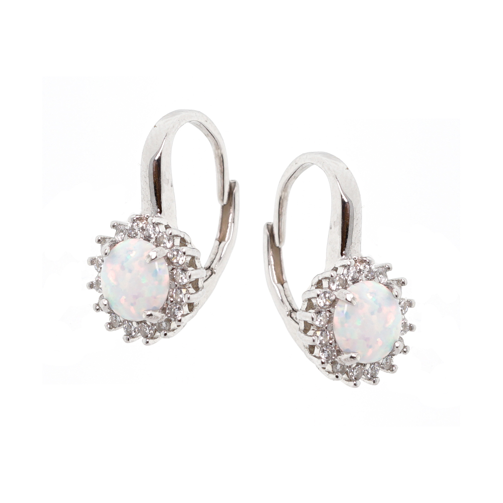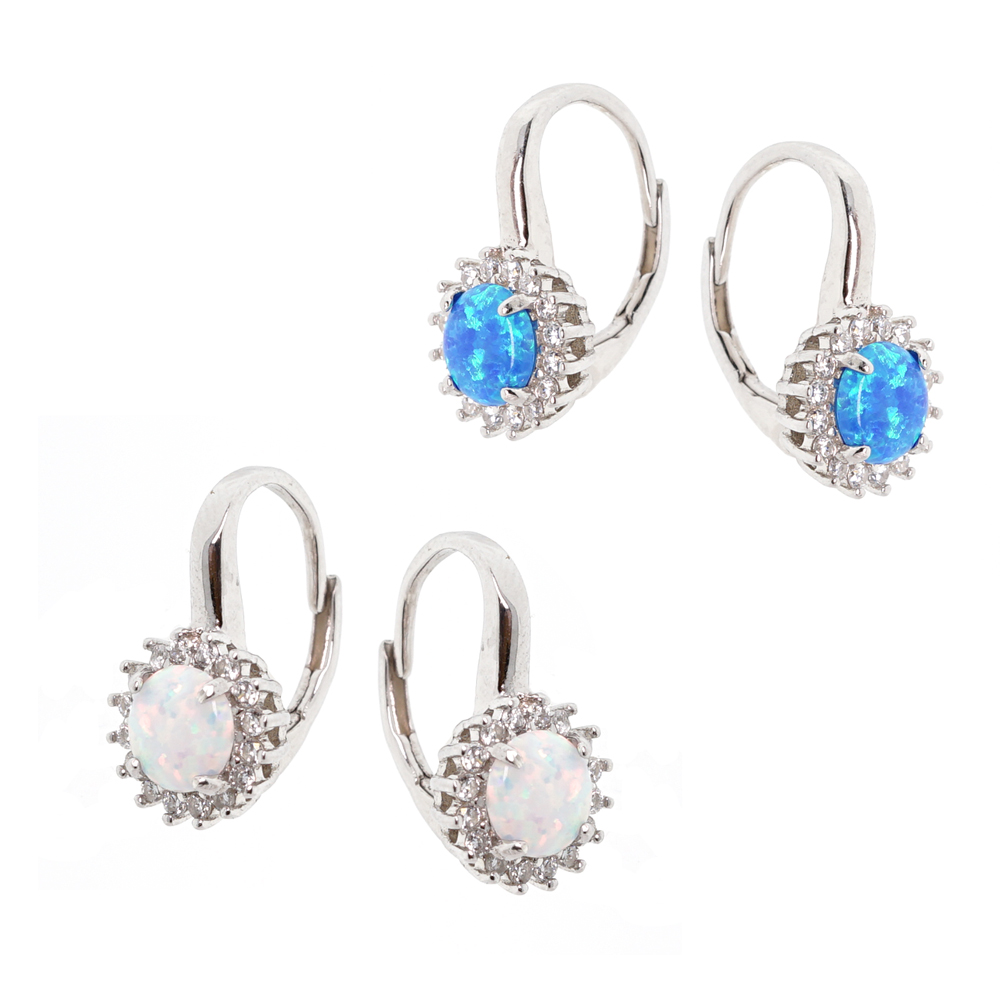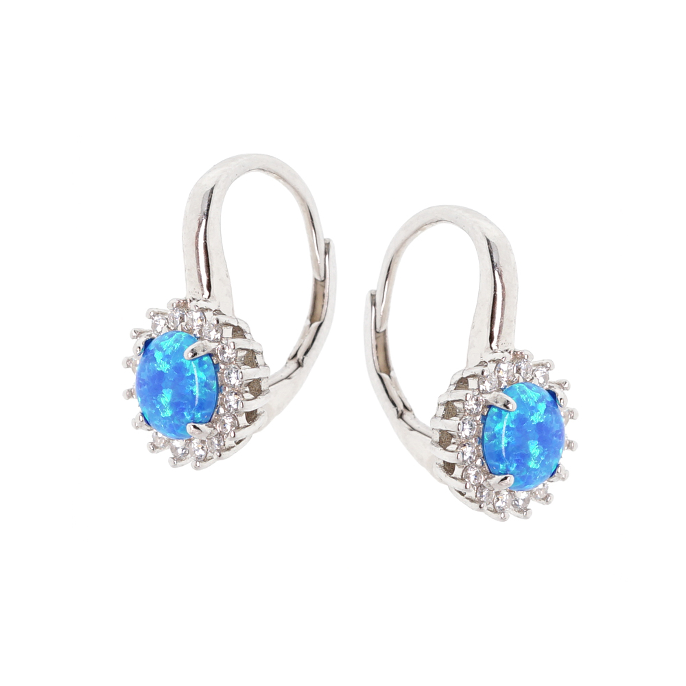 Серьги из серебра 925 пробы с белым или голубым опалом и бесцветным цирконием
