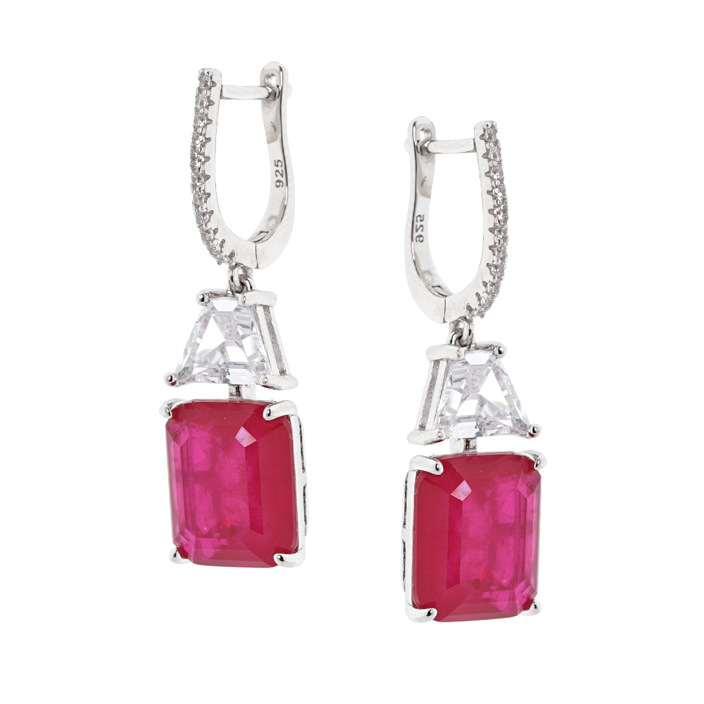 Серьги из серебра 925 пробы с красными и бесцветными фианитами