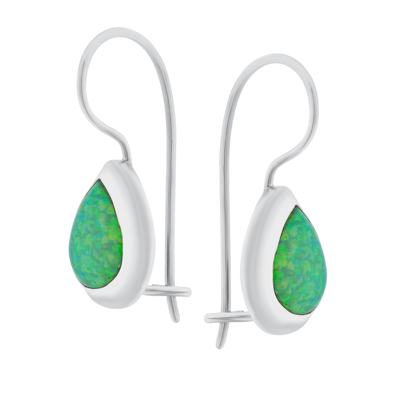 Серьги из серебра 925 пробы с зелёным опалом в форме капли