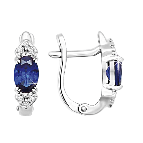 - 1х Серьги из серебра с гидротермальным сапфиром и фианитами
