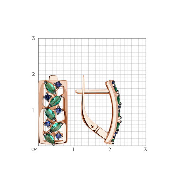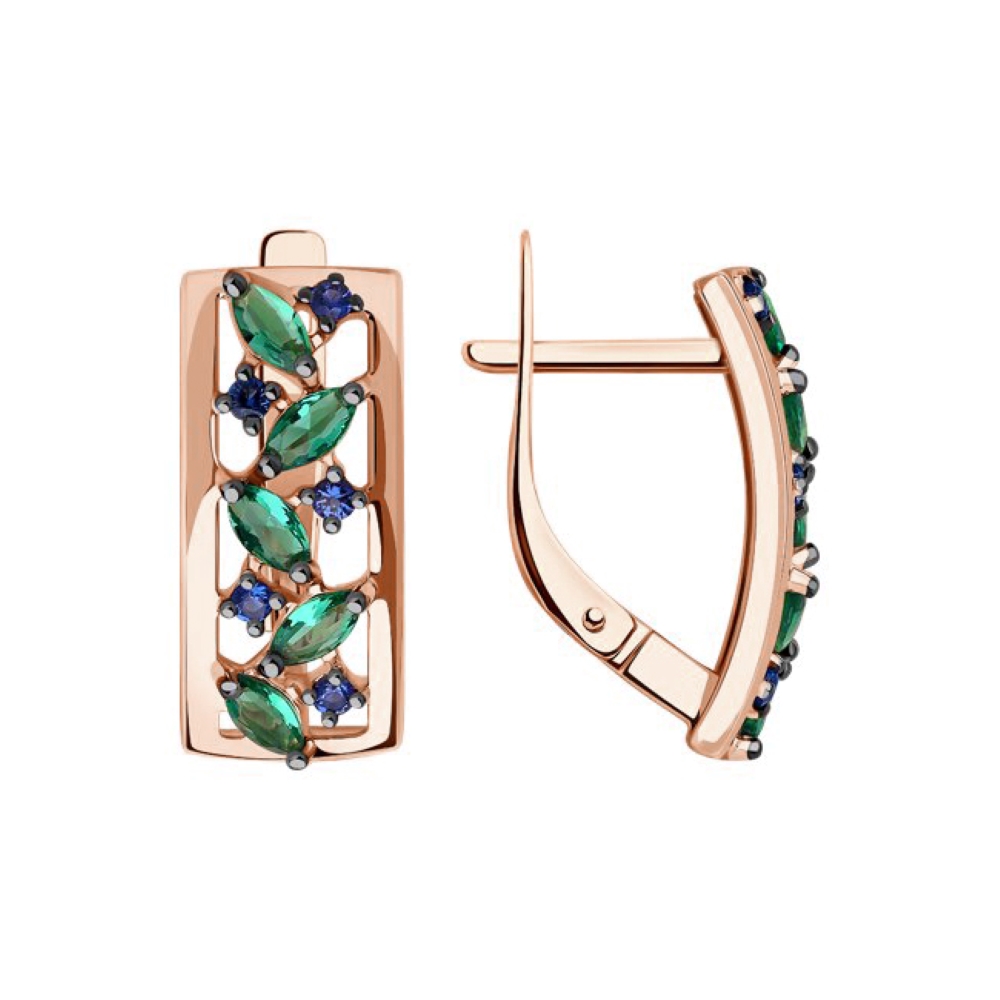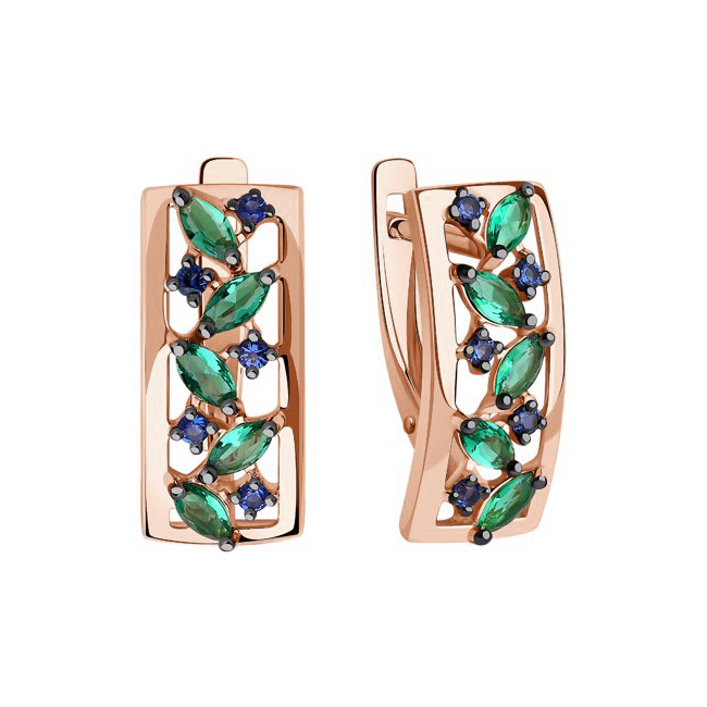 - 1х Серьги из золота 585 пробы с зелёными и синими фианитами