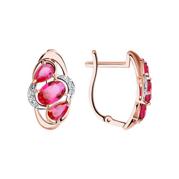 1х Серьги из золота с красными корунд (синт.) и фианитами