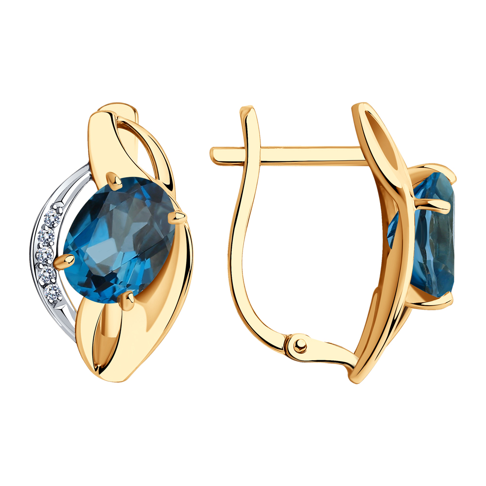 Серьги из золота с топазами и фианитами