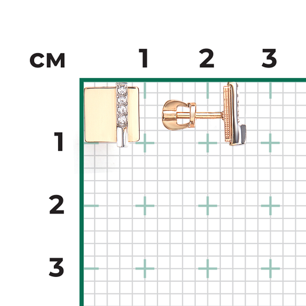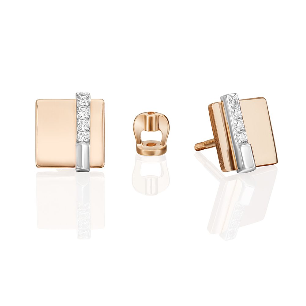 Серьги-пусеты из красного и белого золота 585 пробы, с фианитами, размер ≈ 10х10 мм