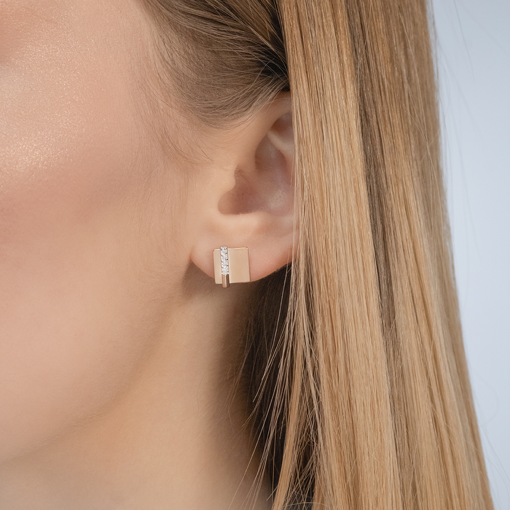Минимализм, строгие линии и сияние в каждом штрихе. Эти серьги-пуссеты выполнены в геометричной форме квадрата и дополнены вертикальной вставкой с инкрустацией из сияющих фианитов. Контраст красного и белого золота придаёт украшению сдержанную выразительность.Идеальный выбор для тех, кто ценит чистую форму, универсальность и деликатный блеск. Подойдут как для офиса, так и для вечернего выхода.