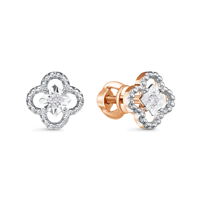 Серьги-гвоздики из красного золота 585 пробы с бриллиантами 2 шт. по 0,030 карат. GSI, размер около 7х7 мм