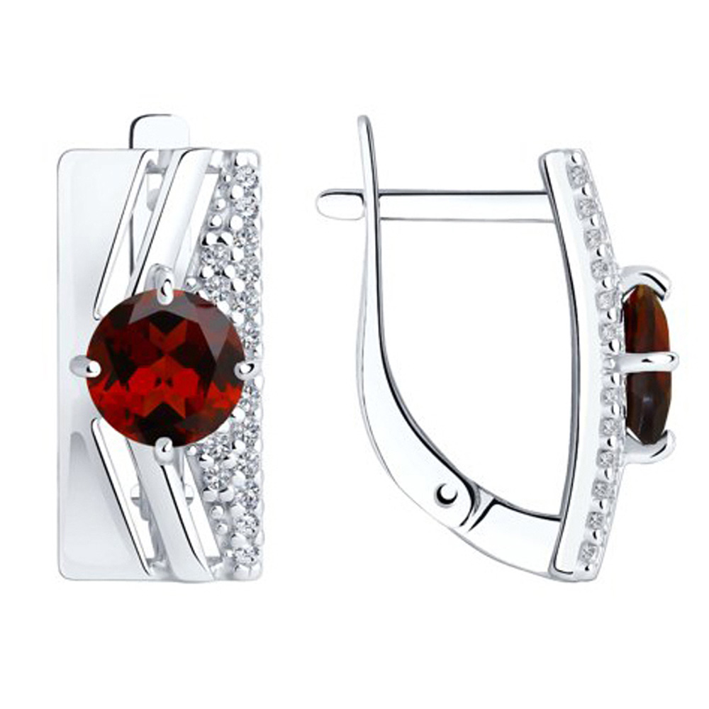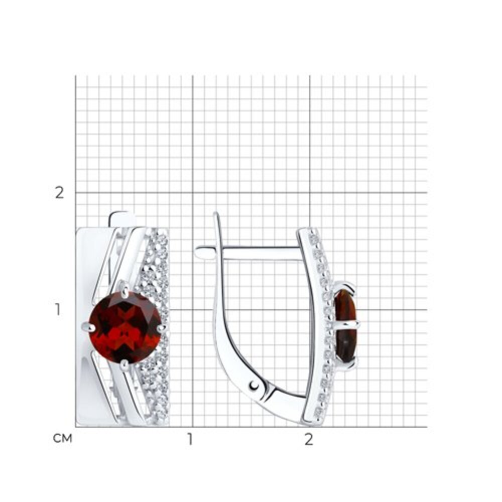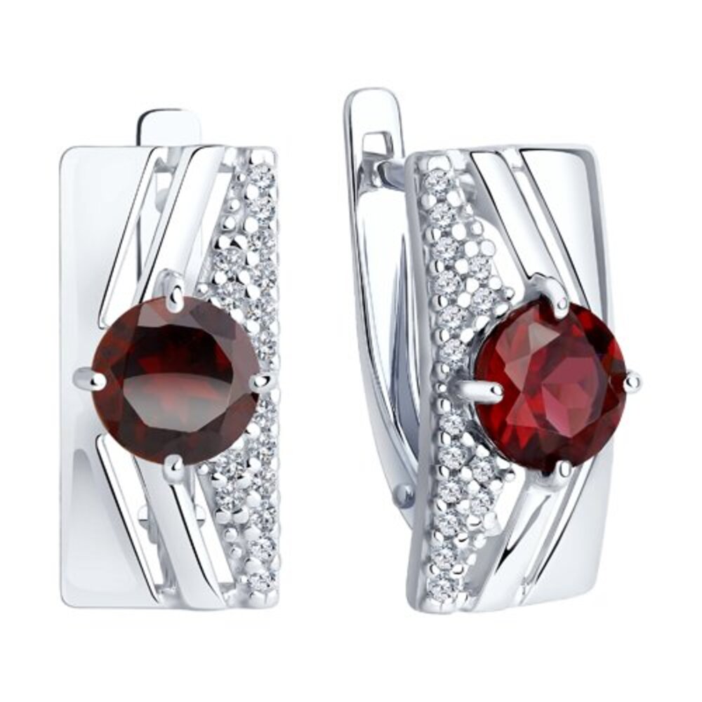 Серьги из серебра 925 пробы с красным родолитом и бесцветным цирконием от DIAMANT