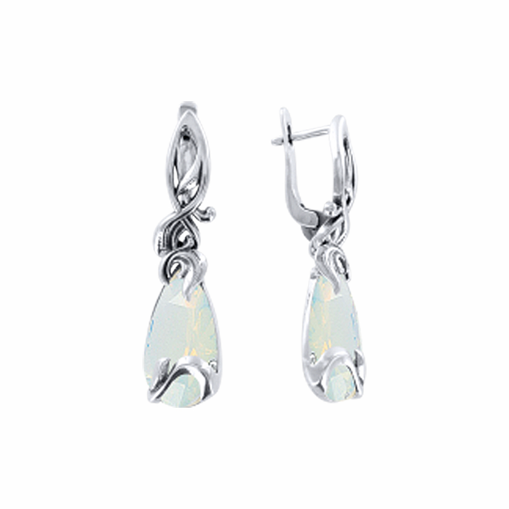 Серьги "Самородок" из серебра 925 пробы с лунным камнем