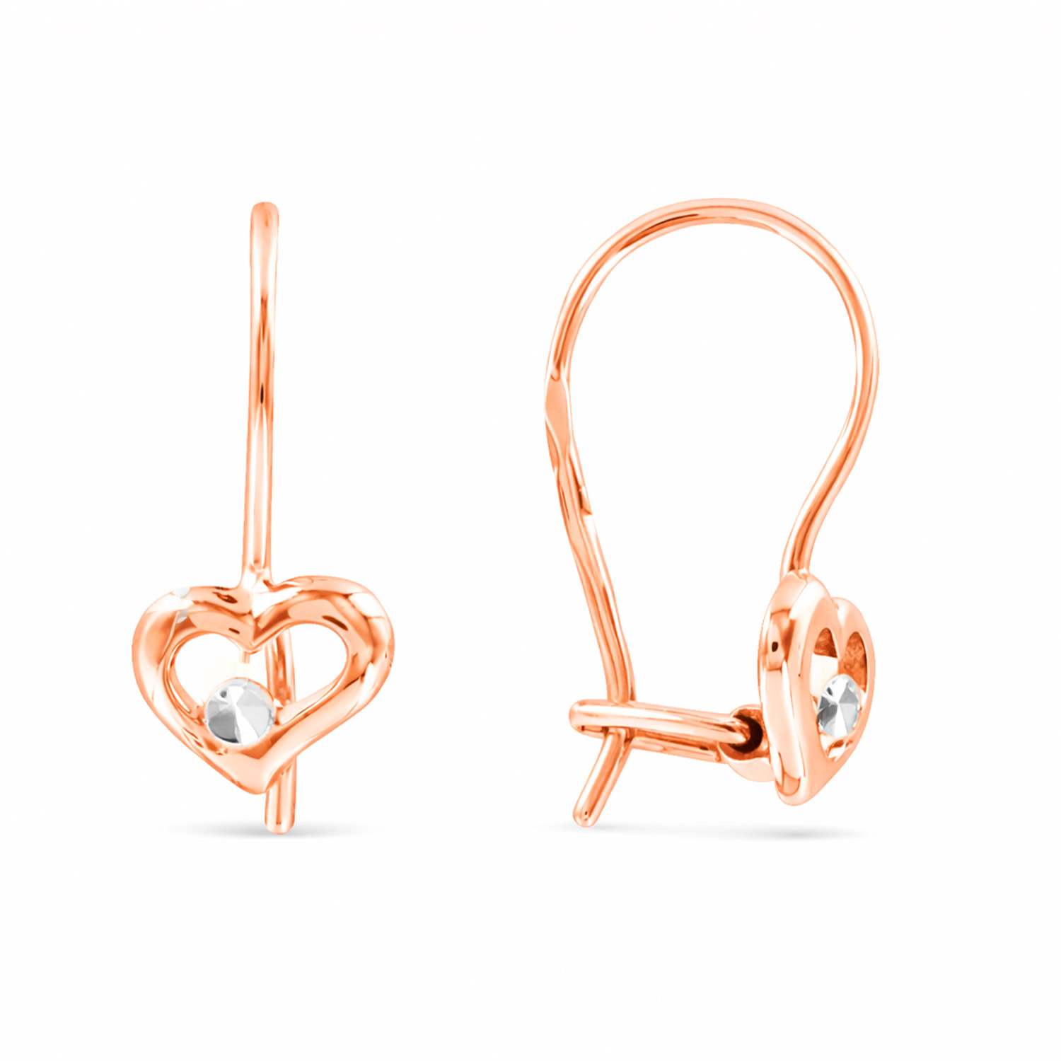 Привлекательные серьги "Сердце" из красного золота 585 пробы, высотой ≈ 15 мм.