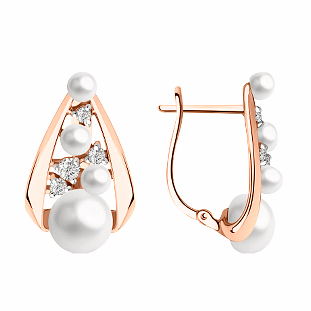 Серьги Sokolov из красного золота 585 пробы с жемчугом и цирконием