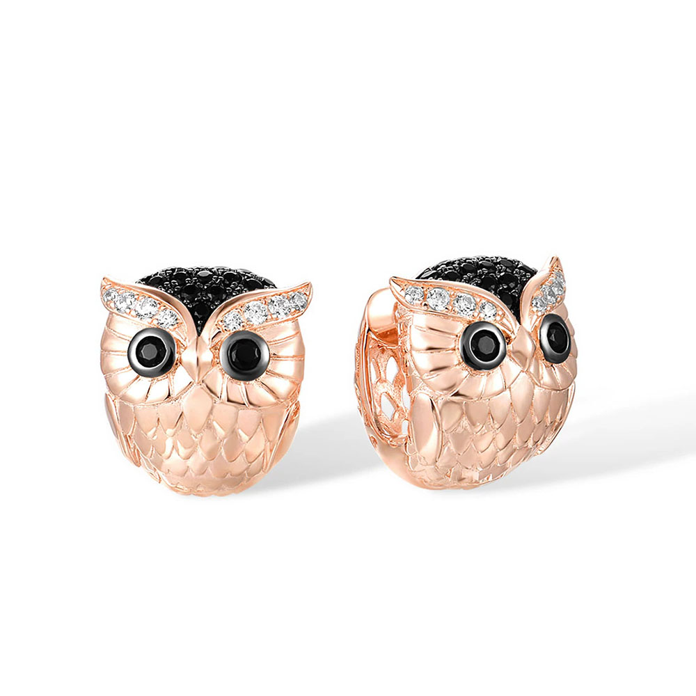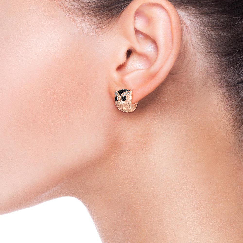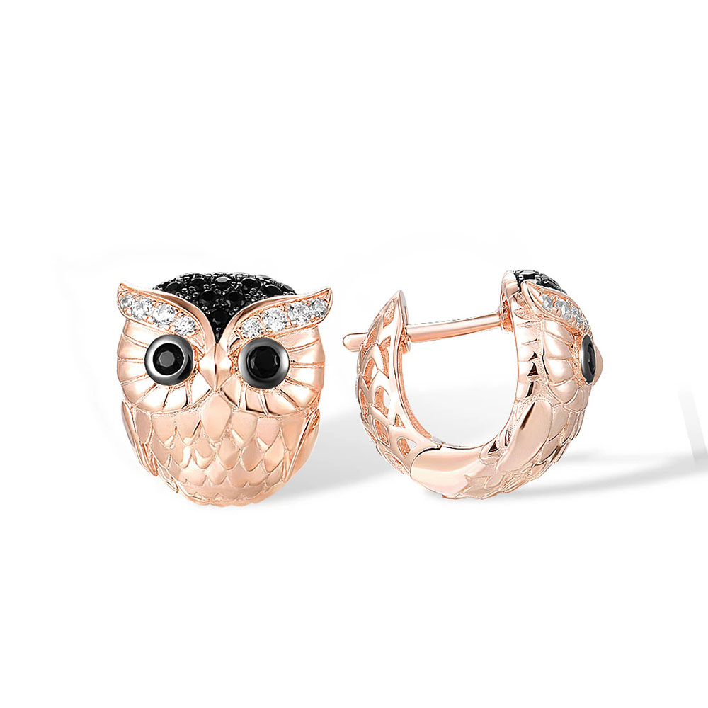 Sokolov Серьги "Сова" из позолоченного серебра 925 пробы с бесцветными фианитами и черной шпинелью