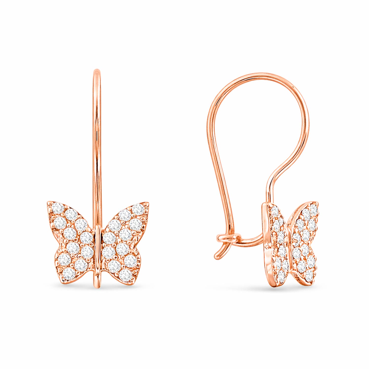 Серьги детские в форме бабочек из красного золота 585 пробы с фианитами, высотой ≈ 15 мм.