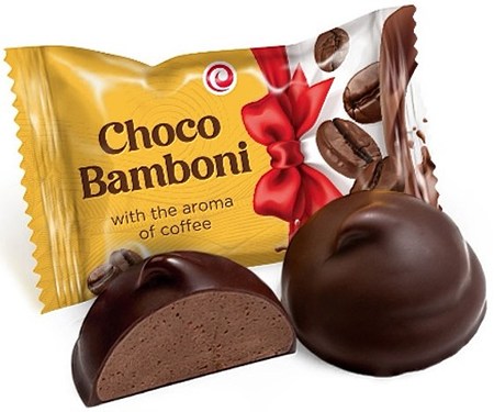 Шоко Бамбони Кофе - это пралине с телом, взбитым с шоколадным кремом, и нежной творожной текстурой с кофейным вкусом.Ингредиенты: Сахар, маргарин (растительный жир (подсолнечное и пальмовое масло, частично рафинированное в натуральном и твердом виде, дезодорированное), патока крахмальная, вода питьевая, глазурь кондитерская 16,0% (сахар, растительный жир (гидрогенизированное пальмоядровое масло), алкализованный какао-порошок, эмульгатор соевый лецитин, ароматизатор "ванилин", соль), крахмал картофельный модифицированный, молоко цельное сгущенное с сахаром 8,5% жирности (молоко коровье цельное, сахар белый (43,5%), лактоза), какао-порошок, белок яичный сухой, загуститель агар-агар, регулятор кислотности лимонная кислота, ароматизатор "кофе", консерванты Е202, Е211.