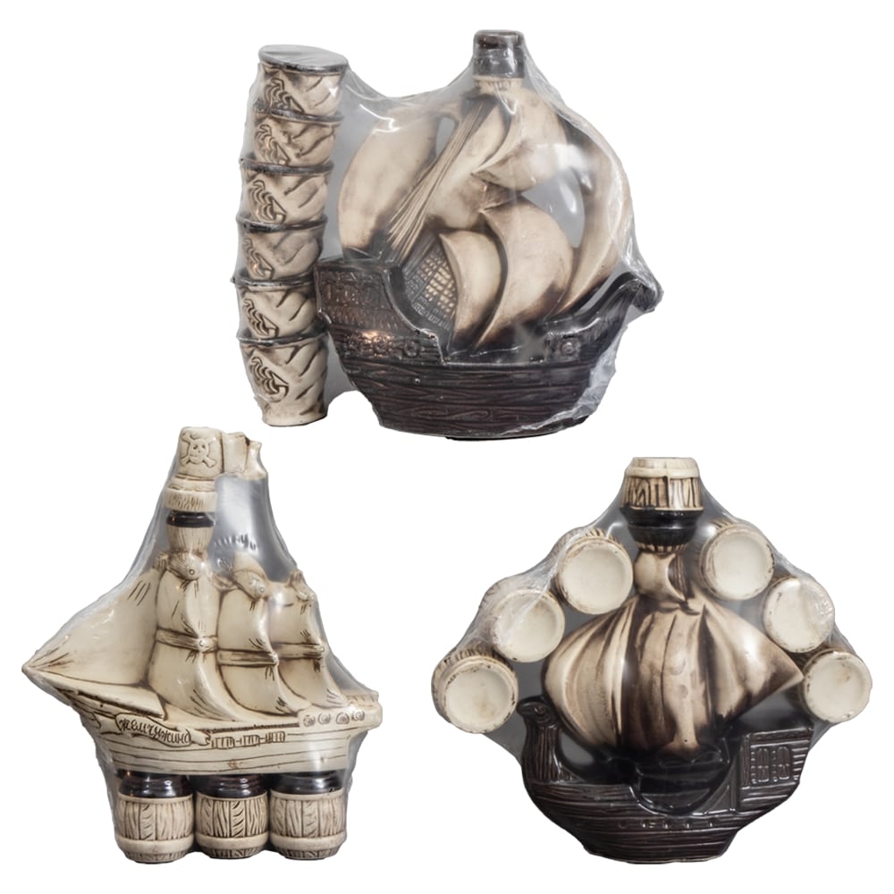 Штоф "Корабль" с очаровательным графином в виде фигурки корабля и шестью уникальными рюмками станет прекрасным дополнением к любому домашнему бару или кухне. Благодаря высоте графина в 31 см этот набор привлечет внимание каждого. Стильный графин в виде корабля не только предлагает привлекательный способ хранения спиртных напитков, но и привносит в ваш дом морской колорит и элегантность. Различный дизайн рюмок подчеркивает индивидуальность набора и делает его предметом обсуждения на любой вечеринке. Этот набор идеально подходит для светских раутов, вечеринок или в качестве особого подарка для друзей и близких - прекрасное дополнение для любителей стильной подачи напитков.Характеристики: