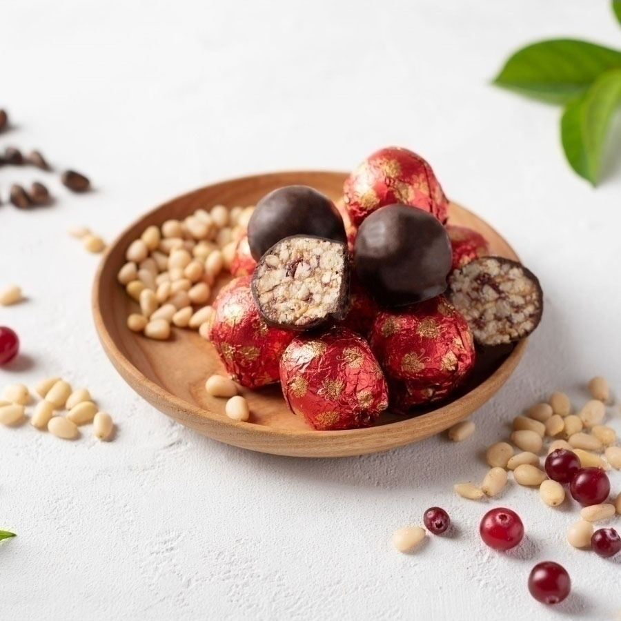 Кедровый грильяж — самые любимые нашими покупателями конфеты. Это наш флагман. Много лет не теряют популярности среди ценителей натуральных сладостей. Это отличный подарок из Сибири, угощение для себя любимого и близких, полезный десерт для самых требовательных сладкоежек.Состав: ядро кедрового ореха цельное, шоколадная глазурь (сахар, какао-масло, какао-порошок, эмульгатор лецитин подсолнечный), ядро кешью, мёд натуральный, пастила клюквенная( пюре яблочное, ягоды клюквы). Возможно наличие следов арахиса, кунжута, злаков, яичных продуктов, молочных продуктов и других видов орехов.