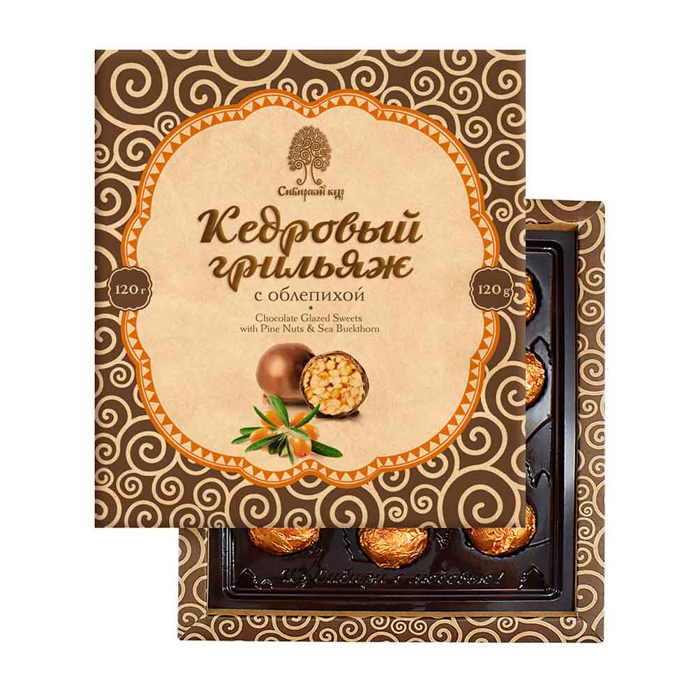 Кедровый грильяж — конфеты из цельного ядра кедрового ореха с таёжным мёдом и ягодами — кладезь витаминов и полезных веществ, подаренных сибирским лесом. Самые любимые подарочные конфеты от эко-фабрики «Сибирский кедр» много лет не теряют своей популярности среди ценителей натуральных сладостей. Отличный подарок из Сибири, угощение для друзей и близких, полезный десерт для самых требовательных сладкоежек.Конфеты из цельного ядра кедрового ореха с добавлением спелой облепихи и алтайского мёда, покрытые шоколадной глазурью.