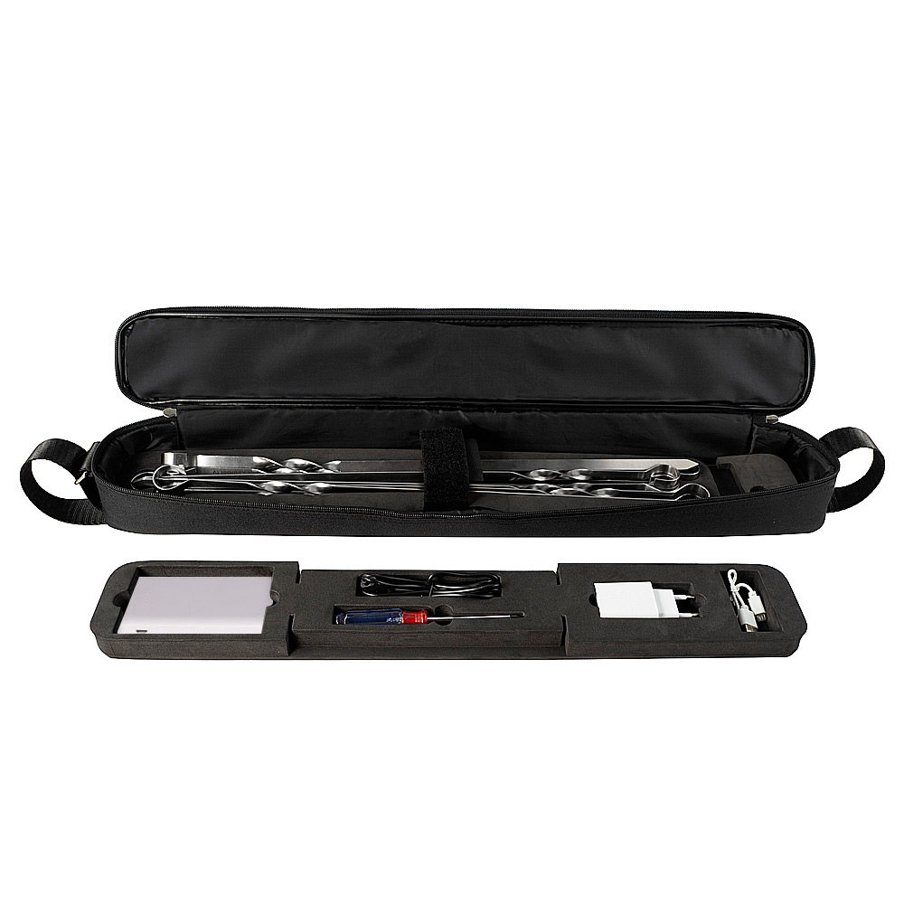 Как и 12 шампуров для барбекю в наборе, насадка для барбекю Rambo с мотором изготовлена из высококачественной нержавеющей стали. Используемый металл устойчив к ржавчине и легко очищается после приготовления на гриле. Поставляемый в комплекте powerbank для вертела для шашлыка с мотором заряжается всего за несколько часов и оснащен различными кабелями и резаком. При наличии электросети набор для барбекю можно также запитать от сетевого адаптера на 220 вольт. Многокомпонентный набор упакован в практичную сумку, которая поместится в любом багажнике автомобиля.Характеристики: