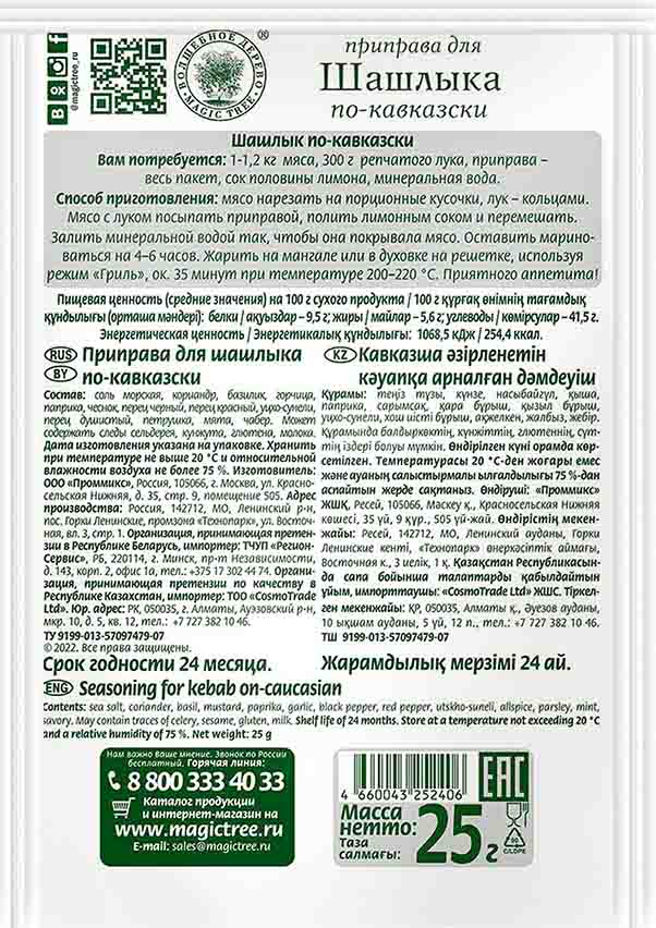 Смесь приправ Magic Tree для шашлыка по-кавказски, 25 г