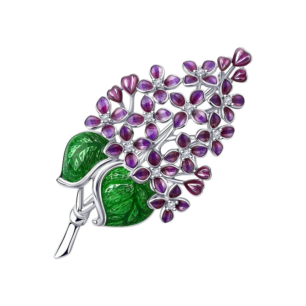 Брошь "Ветка сирени" из серебра 925 пробы с фианитами и эмалью от Sokolov