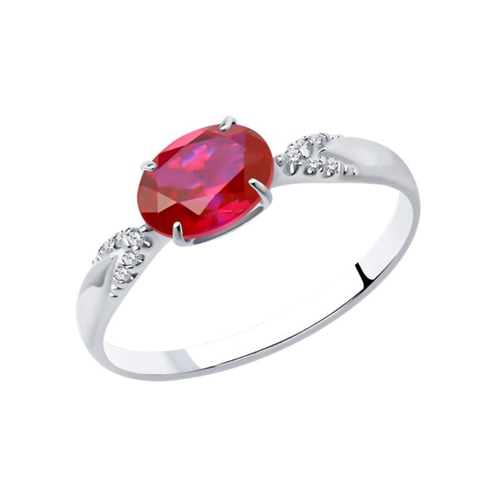 Sokolov Кольцо из серебра с красным рубином (синт.) и фианитами