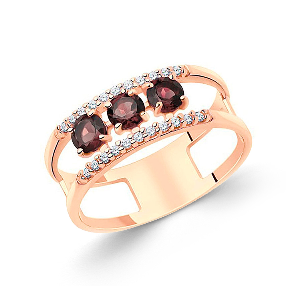 Позолоченное женское кольцо из серебра 925 пробы с дымчатым топазом и цирконием Gr-18 мм