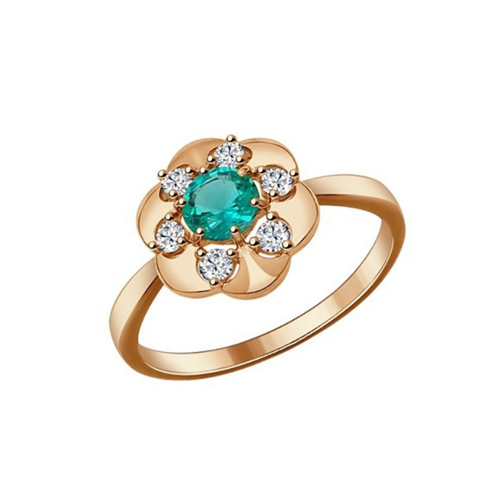 Sokolov Кольцо из позолоченного серебра с изумрудом и фианитами