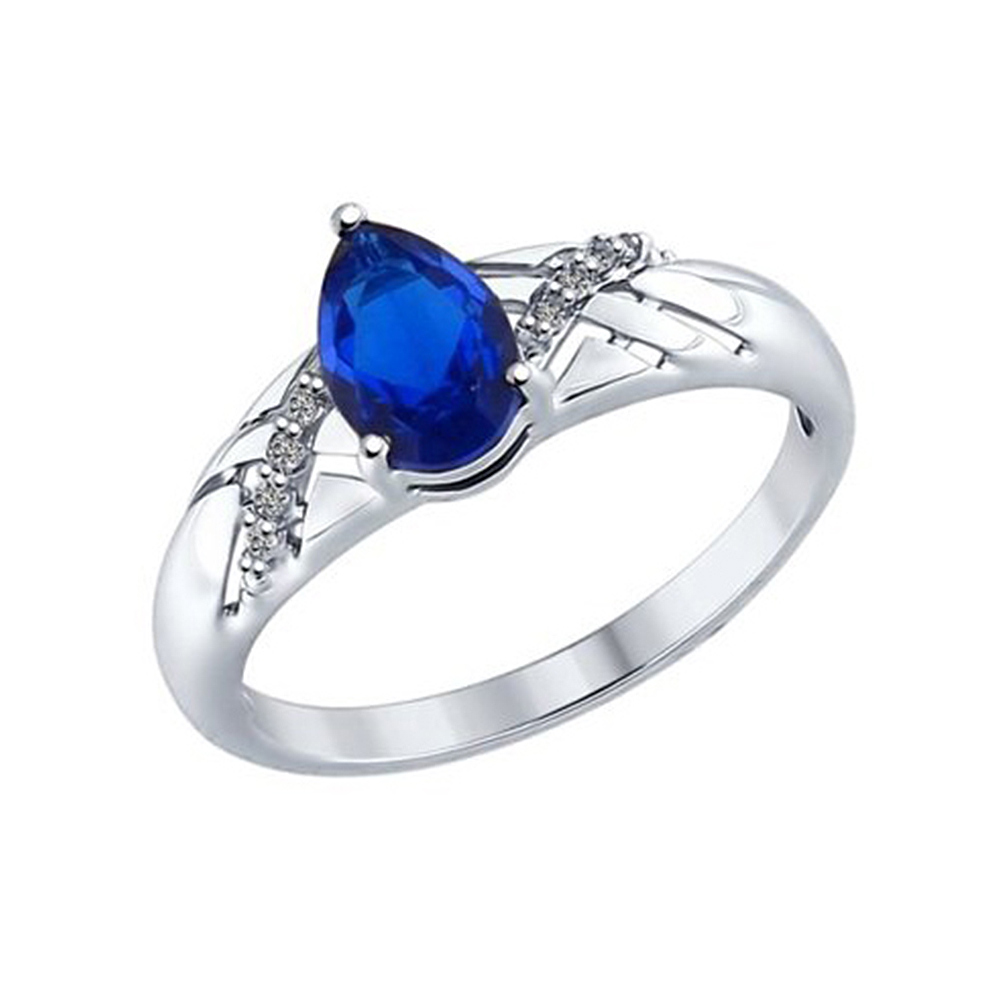 Кольцо из серебра 925 пробы с бесцветными и синим фианитами от Sokolov