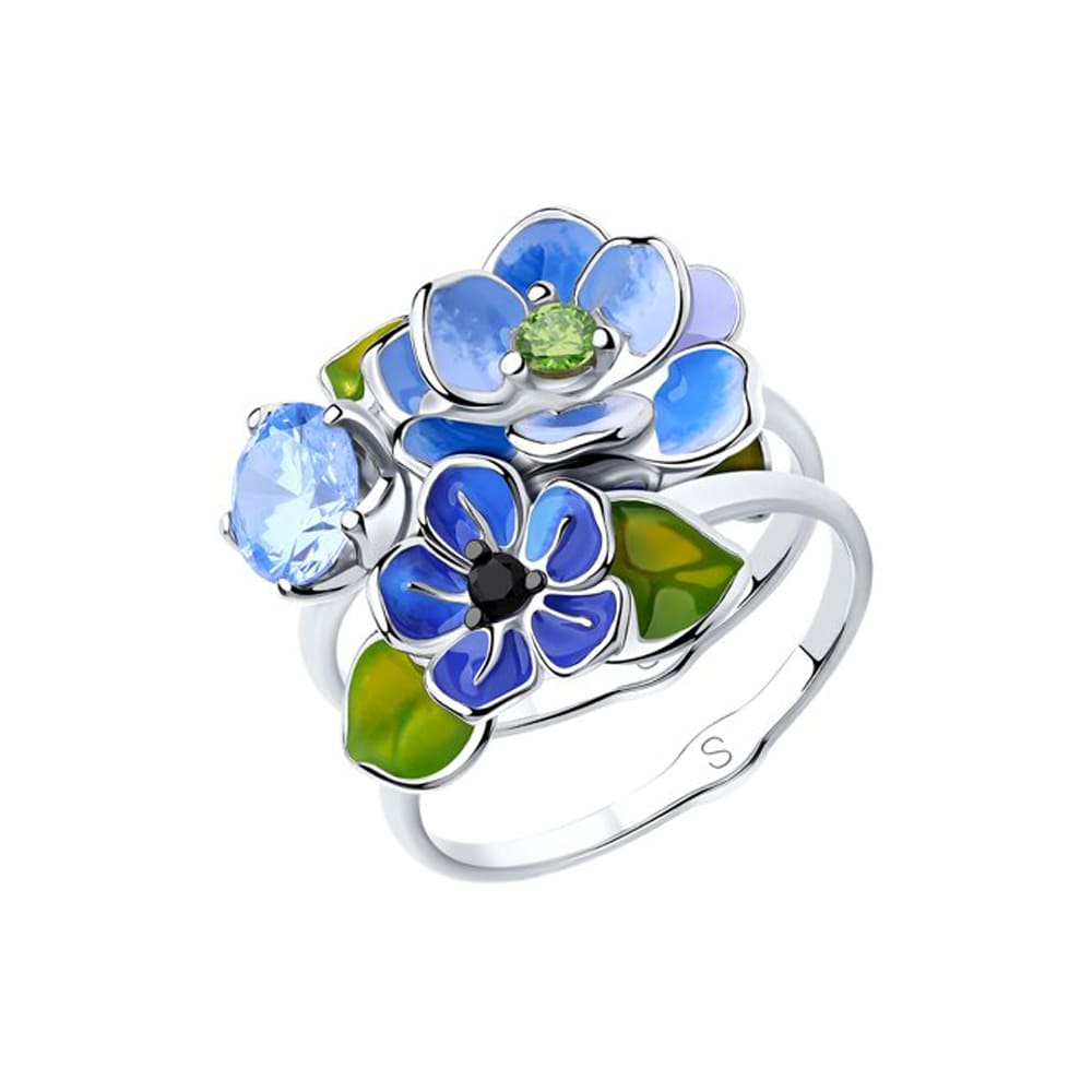 Sokolov Кольцо из серебра 925 пробы с эмалью и фианитами