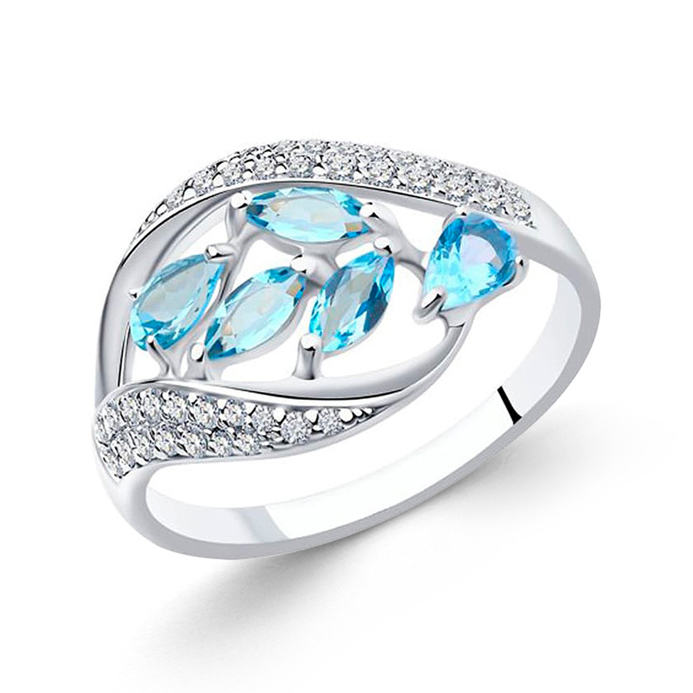 Женское кольцо Sokolov из серебра 925 пробы с голубым топазом и фианитами, размер-19 мм