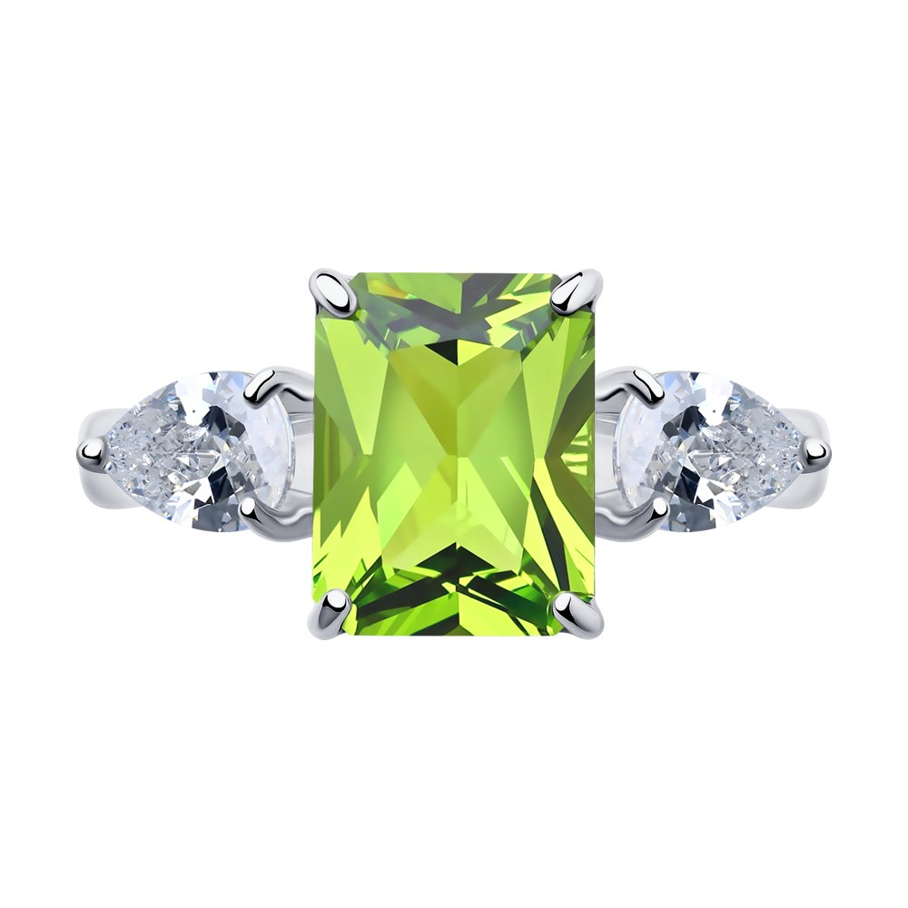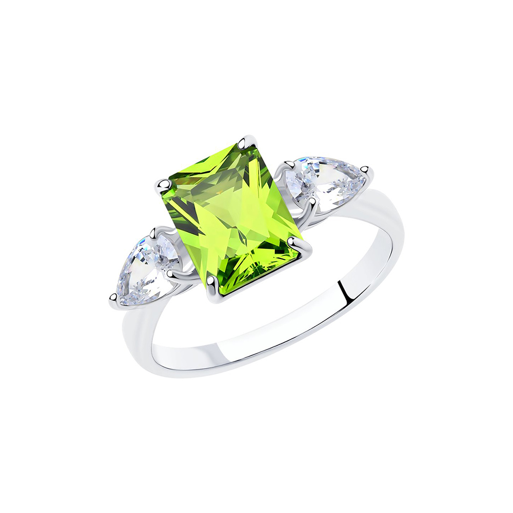 Кольцо из серебра 925 пробы с зелёным ситаллом и фианитами от Sokolov
