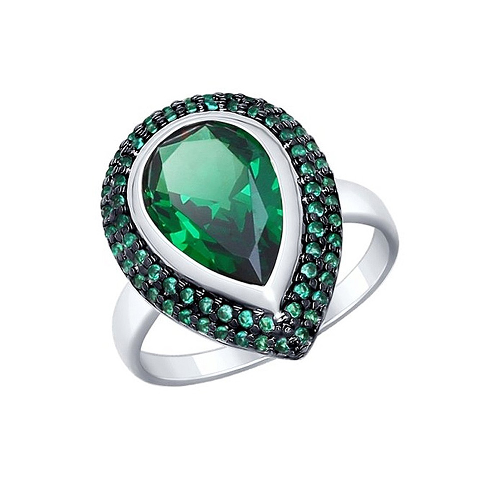 Кольцо из серебра 925 пробы с зелёным ситаллом и зелёными фианитами от Sokolov