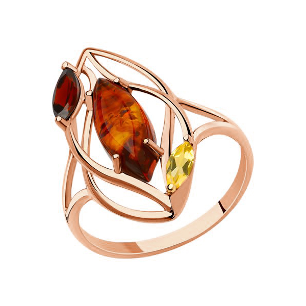 Sokolov Кольцо из золота 585 пробы с гранатом, цитрином и янтарём