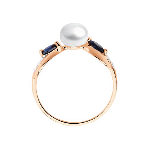 Кольцо из золота 585 пробы с сапфирами, жемчугом и фианитами