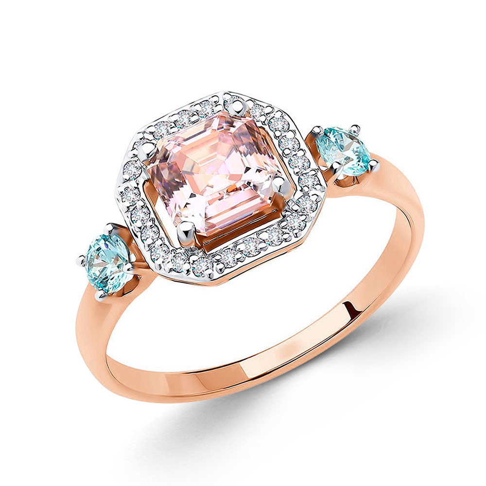 Женское кольцо Sokolov из розового золота 585 пробы с цирконием Gr-18 мм