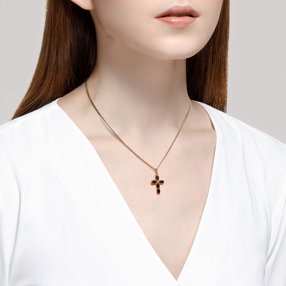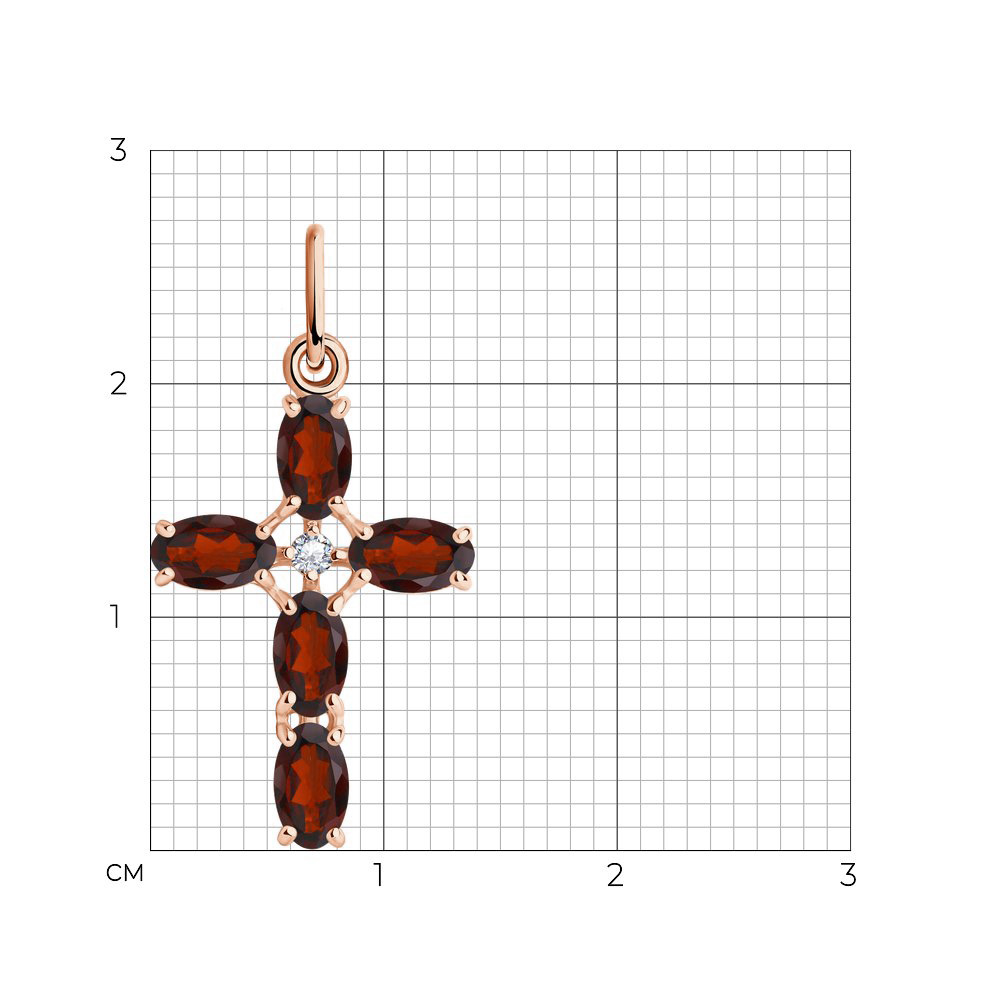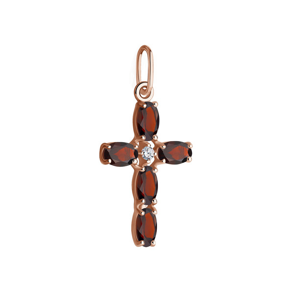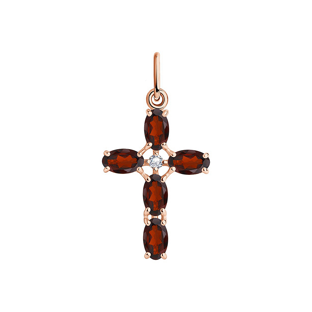 Крест-подвеска из красного золота 585 пробы с гранатом и фианитами от Sokolov