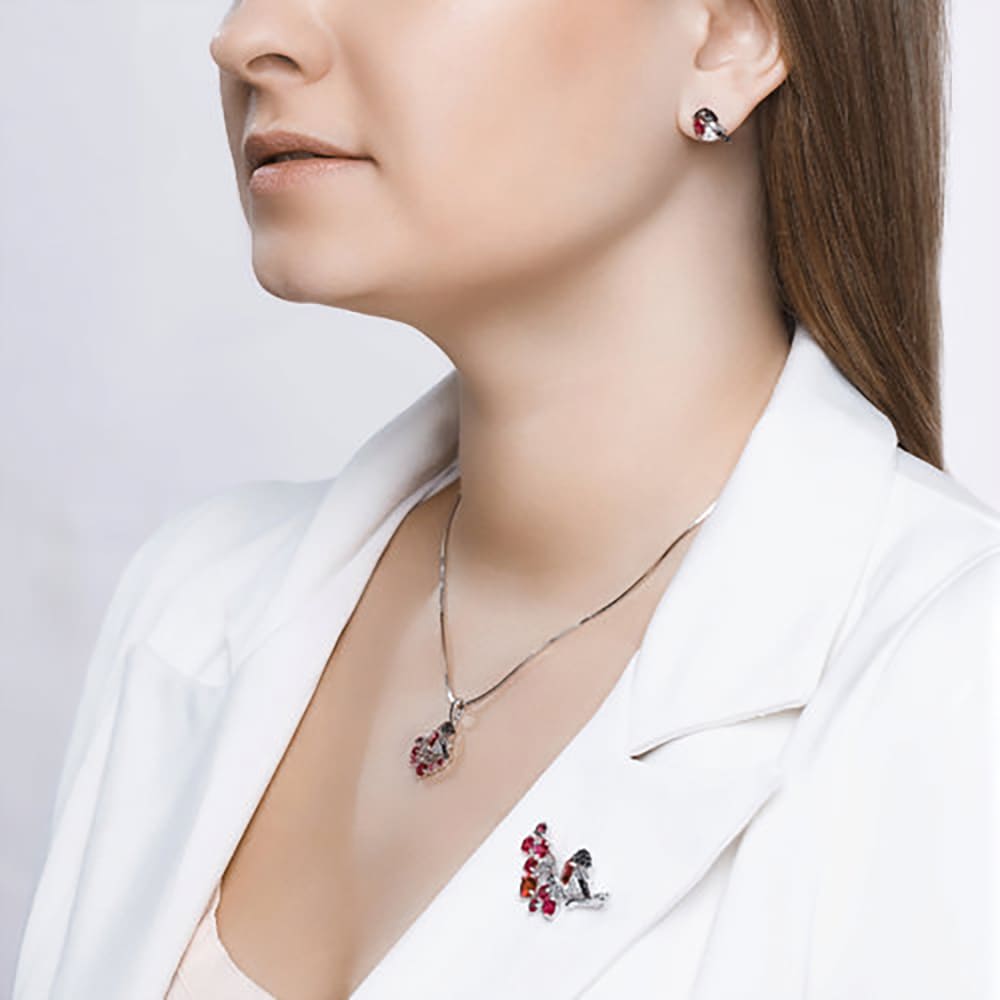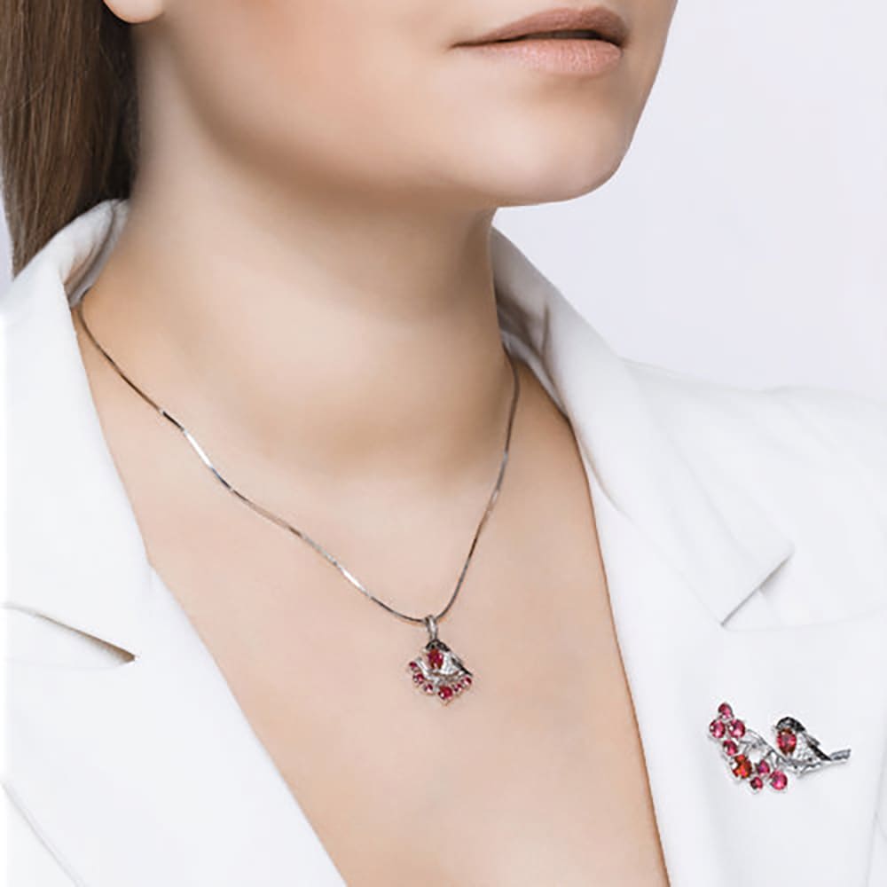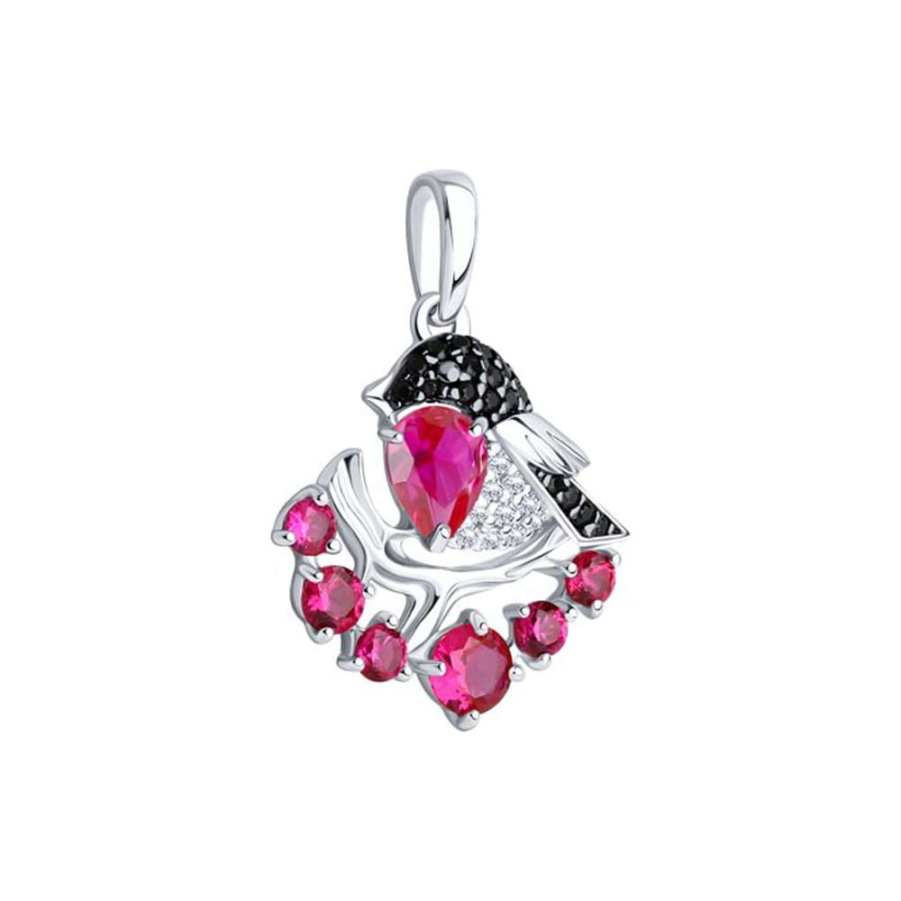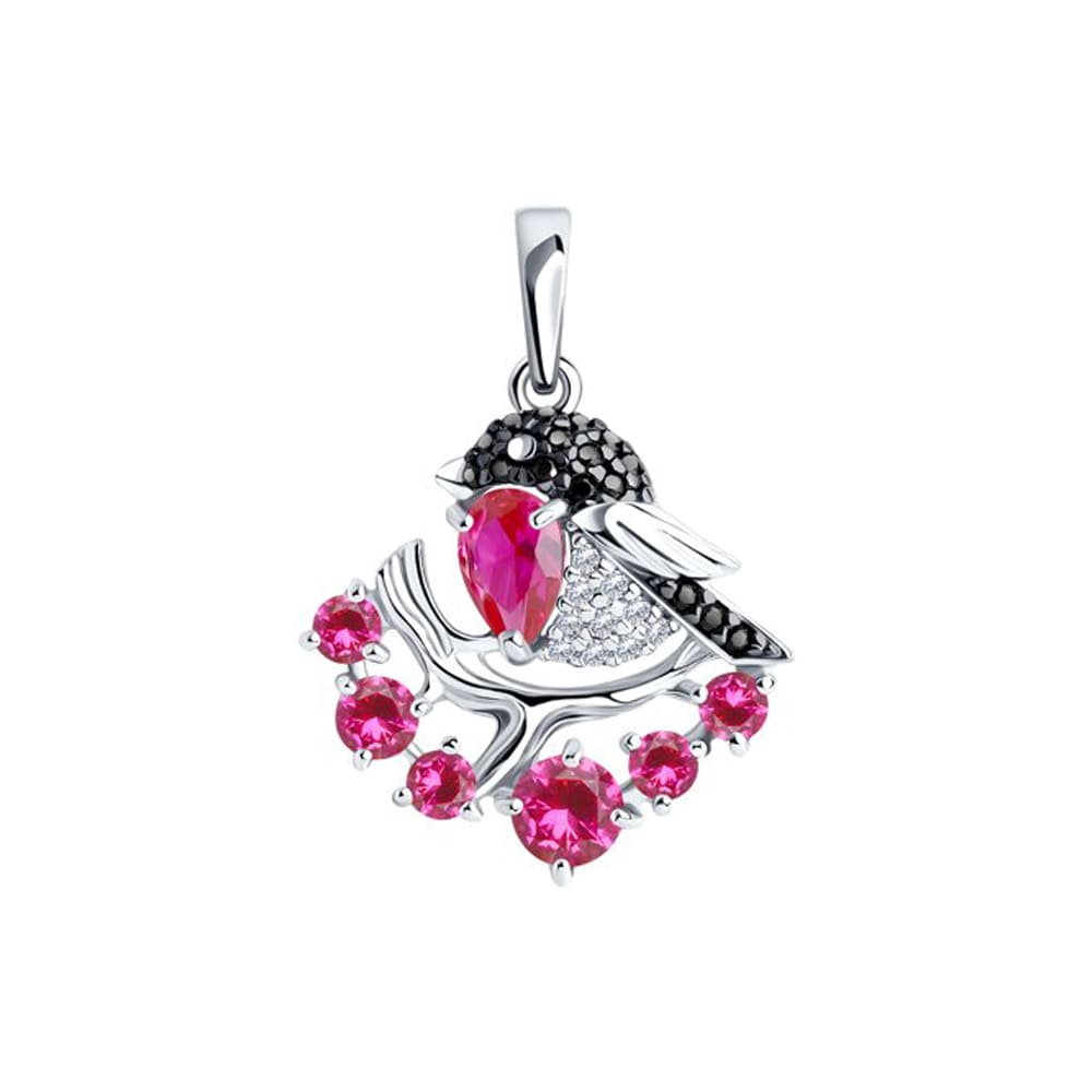 Подвеска из серебра 925 пробы с красными синт. рубинами/корундами и бесцветными, красным и чёрными фианитами