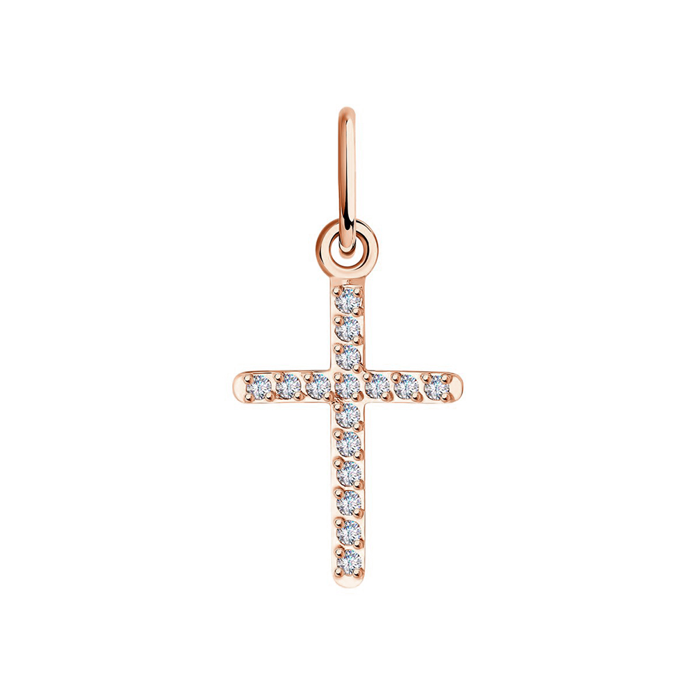 Подвеска-крест из красного золота 585 пробы с фианитами от Sokolov